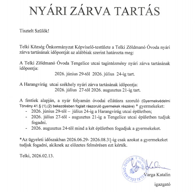 Nyári zárva tartás