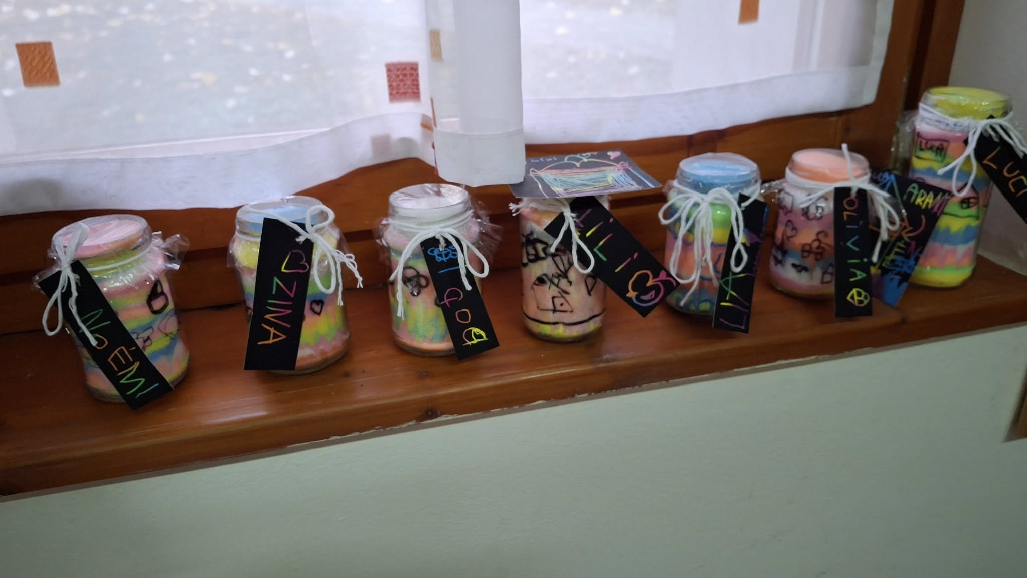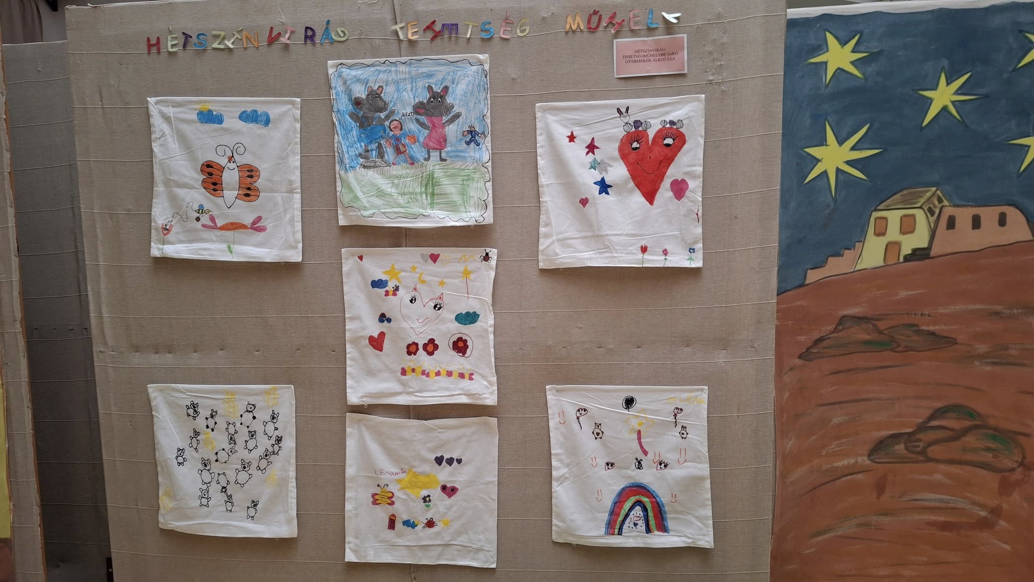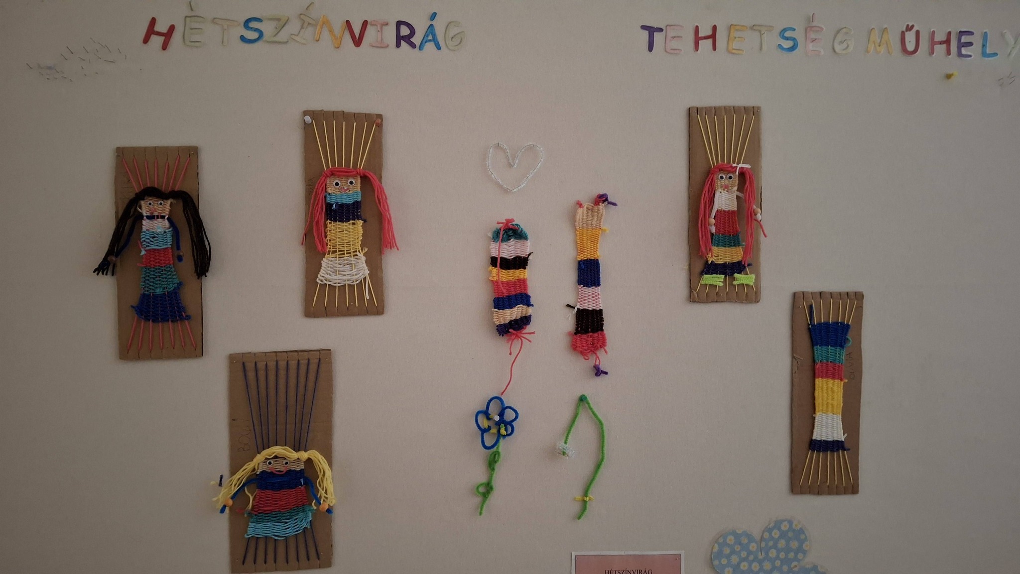 - Az elkészült alkotások kiállítása az óvoda folyosóján található „Hétszínvirág falon”